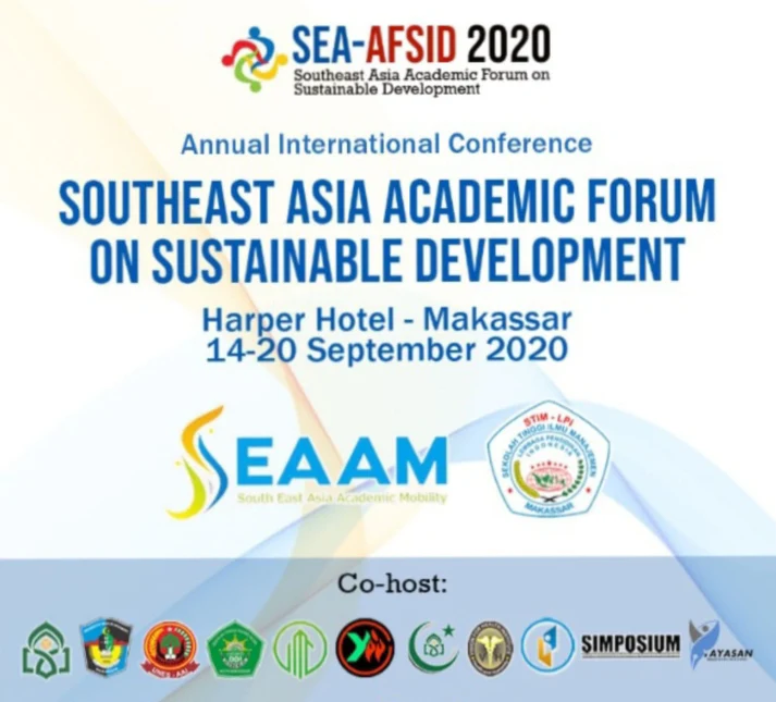 Dalam kegiatan ini dengan mengambil tajuk utama yakni Southeast Asia Academic Forum on Sustainable Development (SEA-AFSID) 2020. Pada pelaksanaan kegiatan ini akan lebih memprioritaskan terkait dengan issue-issue pembangunan berkelanjutan pada kawasan Asia Tenggara. Pada Pelaksanaan International Conference SEA-AFSID 2020 kali ini, STIM LPI Makassar yang akan berperan sebagai tuan rumah yang juga berkolaborasi dengan Serikat Mahasiswa Penggiat Konstitusi dan Hukum (SIMPOSIUM) pada penyelenggaraan kegiatan ini.